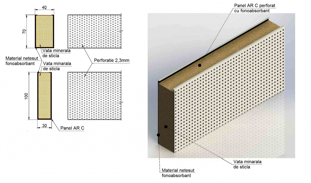 Pentru a asigura un control acustic optim în încăpere, lamelele pot fi perforate. În calitate de funcție standard, lamelele perforate sunt prevăzute cu un material nețesut fonoabsorbant, lipit pe suprafața interioară a lamelei.