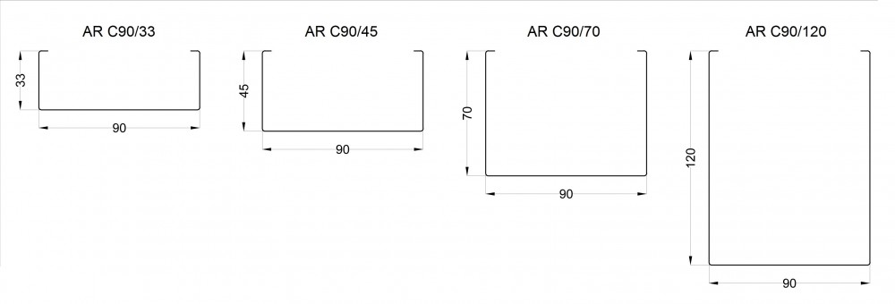 Panourile pot fi livrate de orice lungime, de la 1000 mm la 6000 mm, profile portant (ghidajul) are o lungime standard de 4000 mm.