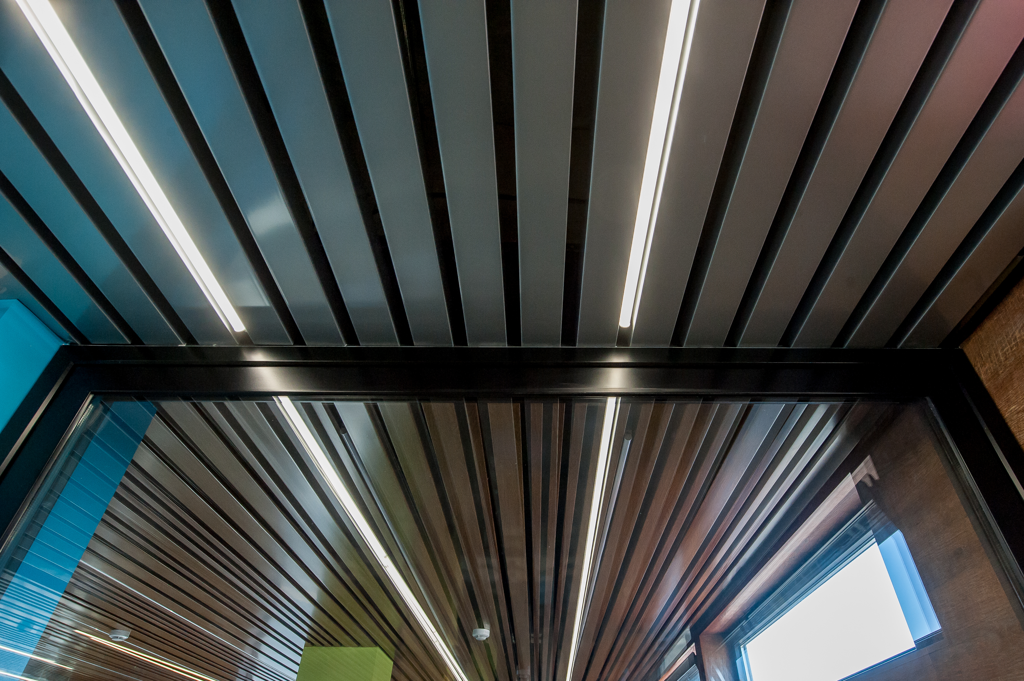 Pentru construcția tavanelor în încăperi cu dimensiuni transversale mari se utilizează elementul de cuplare. Sistemul se va înscrie perfect în încăperile cu configurație complexă - lamele se pot rezema de suprafața verticală în rază, sub un unghi de 90°, sau orice alt unghi, ceea ce extinde substanțial spectrul de posibilități privind crearea interioarelor exclusive. În cazul unei distanțe mari între lamele, pe profilul portant mai pot fi montate și lamele decorative. Sistemul admite utilizarea lămpilor, instalate între lamele, care asigură cu succes iluminarea.