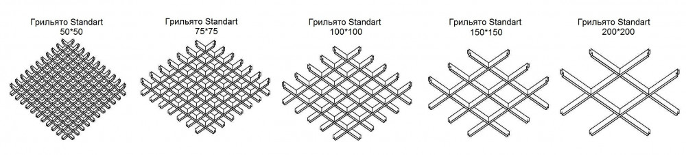 Система стандарт - является самой популярной моделью, которая представляет собой одинаковые по размеру квадратные ячейки. Подвесная система для этого потолка представляет собой U-образный алюминиевый профиль. Ячейки на профиле могут быть разного размера. В зависимости от размеров частей можно добиться разного вида дизайна. Например, для помещений с высокими потолками следует выбирать потолки с большими размерами ячеек. Для низких потолков будет идеальной мелка решетка.